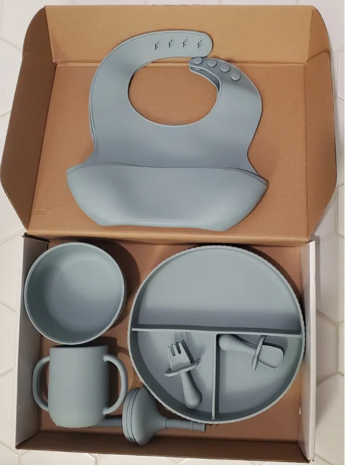 موثوقة وآمنة للاستخدام: مصنوعة من السيليكون عالي الجودة، مجموعة لوازم تناول الطعام للأطفال ناعمة ومريحة الملمس، ثابتة وقابلة للاستخدام، بدون رائحة أو رائحة، يمكنك استخدامها بثقة
